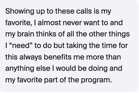 With Sabrina In Your Pocket, you’ve got a coach you can text 24/7! Yep - it’s like having me (hi! 👋🏼) in your phone, ready to support you anytime you need it.