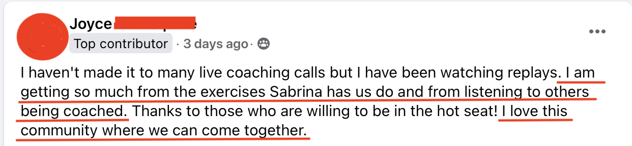 As a FFA 2.0 member, you're not just getting a course - you're getting a support system. You get lifetime access to a private, supportive community where you can ask questions, share wins, and get the encouragement you need along the way: